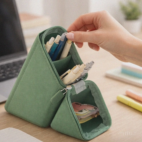 It can easily store pens, pencils, crayons, erasers, and other small stationery items while still staying compact.